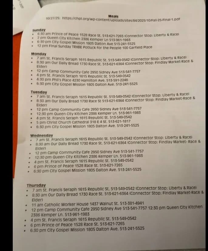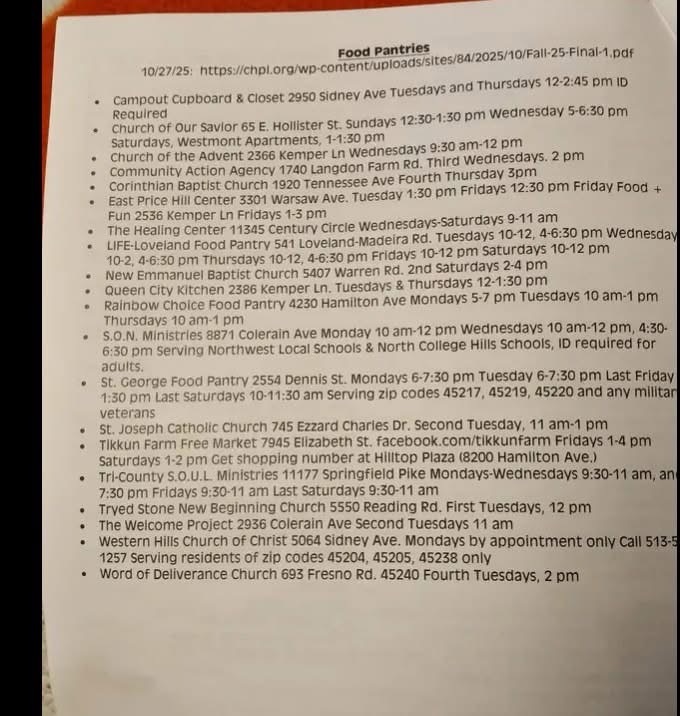 Use online tools: sites like FindHelp.org list updated food & meal programs in Cincinnati.