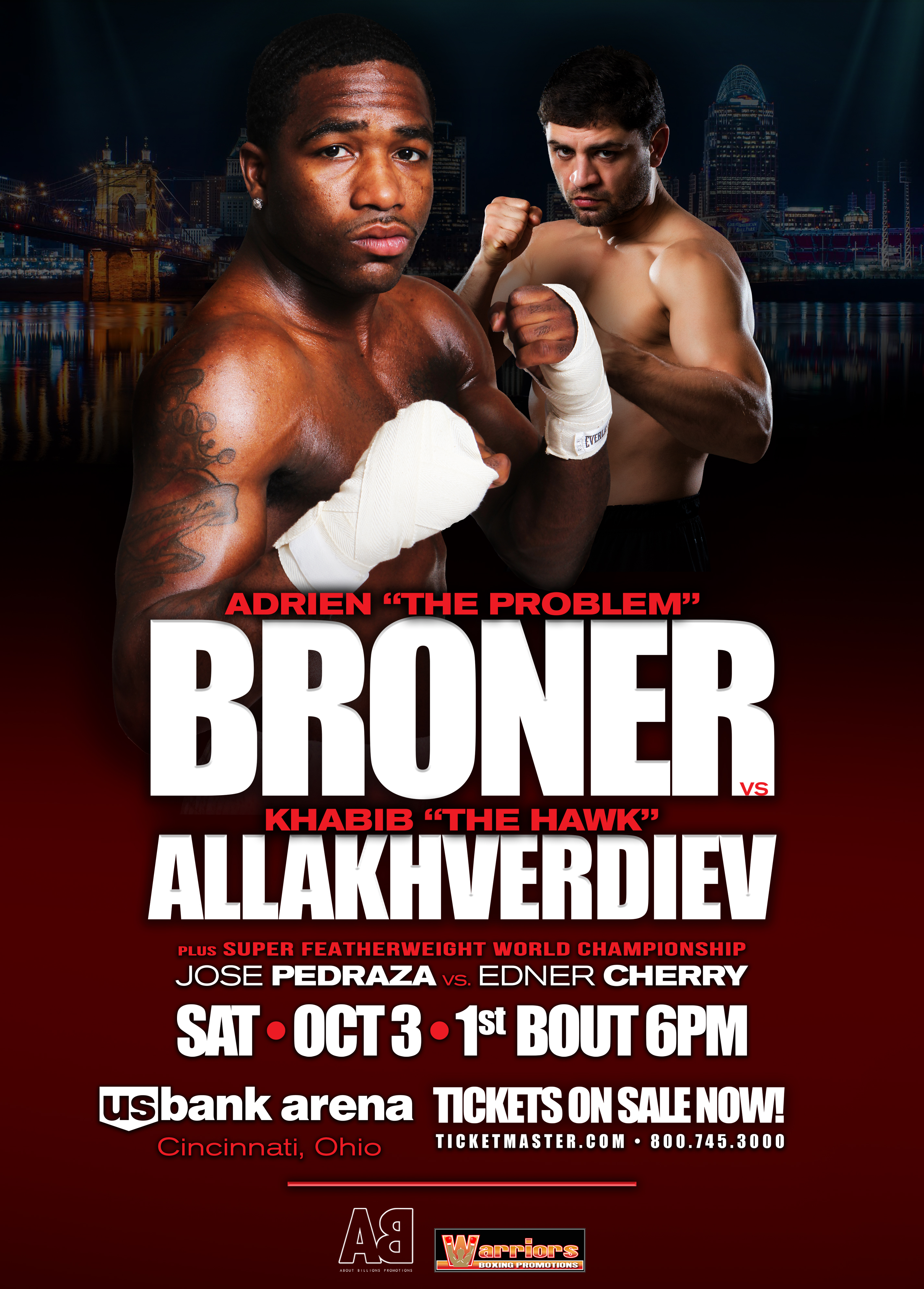 Adrien ‘The Problem’ Broner returns to Cincinnati at the US BANK ARENA Saturday October 3rd to rewrite history as the youngest world champion with 4 world titles! This is a WBA Title Fight against a formidable opponent, former champ Russian hard-hitter Khabib ‘The Hawk’ Allakhverdiev – also featuring an undercard of former Olympians Jamal Herring, Raynell Williams, & Robert Easter Jr. – this fight will be featured on SHOWTIME. Come support your Hometown Hero on his quest to be the youngest champion chasing 4 world titles LIVE in Cincinnati in 2 weeks at the US Bank Arena Saturday 10/3!! Tickets available at all Ticketmaster outlets.